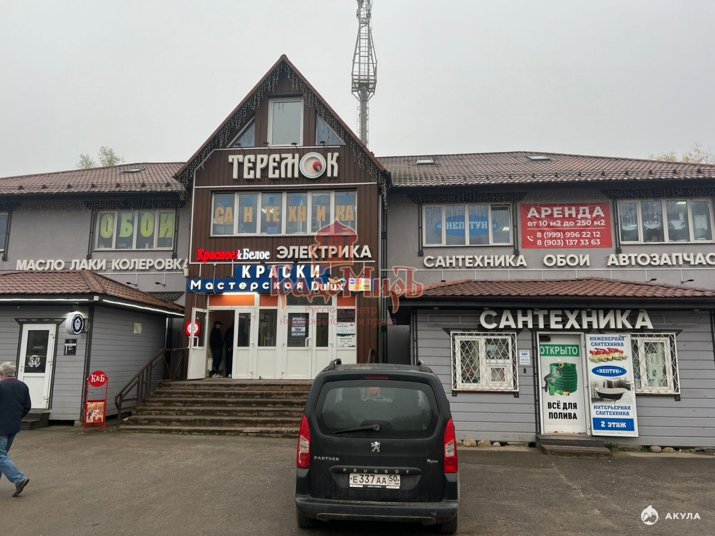 По соседству магазины для ремонта, Пятерочка, Красное и Белое.